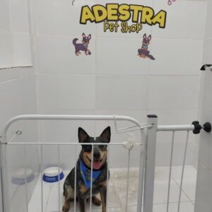 Sabemos que seu pet é parte da família e merece o tratamento mais especial. No Adestra Pets Shop, transformamos a hora do banho em um momento de relaxamento e prazer. Adeus, estresse! Nosso ambiente é climatizado e tranquilo, com um cercadinho seguro onde seu amigo pode esperar confortavelmente, sem gaiolas e sem ansiedade.